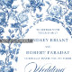 Chic Royal Blue Toile Floral Wedding Invitation