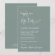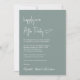 Minimalistische Salbei-grüne Hochzeitsempfehlung mit "Happily Ever After Party" in einem schicken, modernen, weißen Drehbuch, Ihrer Heiratsankündigung und Einladung und Ihren Namen in einem signaturähnlichen weißen Drehbuch.