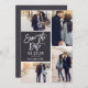 Diese moderne Save the Date Fotokarte verfügt über eine 4-Foto-Collage und eine moderne Schrift mit Pinsel. Kommt mit einem Muster auf der Rückseite. Fügen Sie zusätzliche Informationen wie Ihre Hochzeitswebsite hinzu oder stellen Sie Ihren Hochzeitshashtag vor. Kontaktieren Sie unseren Designerladen für weitere Farboptionen/Variationen.