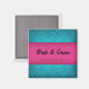 Chic Square Speichern Sie den Datums-Magneten mit Diamant blauer Damask und Hot-Rosa-Akzent Band