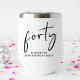 Élégant cave à vin pour votre fête de 40e anniversaire avec "quarante" présenté dans un script chic et votre nom en lettres simples et modernes.
