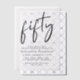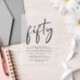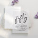 Erleben Sie Ihre 50. Geburtstagsparty mit dieser schicken Vellum-Papiereinladung, die "50" in einem zeitgenössischen Drehbuch, Ihren Namen in klassischer Serifentypografie und die Party-Details in einfacher Schrift darstellt. Sie können diese Einladung auf Ihrem Foto für eine raffinierte Touch überlagern.
