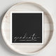 Elegante, schwarze Graduiertenservietten mit "Graduate" in einem schicken, modernen weißen Drehbuch und den Namen und Klasse Jahr des Grafen in einfacher weißer Typografie.