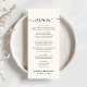 Moderne und schicke helle cremefarbene Rezeption mit "menu" in einem Kalligraphieskript mit Swashes, Ihrem maßgeschneiderten Menü in einfacher Typografie, Ihren Vornamen verbunden mit einem Herz und Ihrem Empfang Datum.