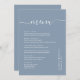 Chic Script Dusty Blue Wedding Reception Menükarte