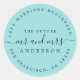 Chic, modern und einfach Hochzeitskalligraphie klassischer Rundaufkleber mit dem Text der Zukunft Mr. und Mrs. in schwarz-eleganter Schrift Kalligraphie und stilvolle Typografie auf türkisblauem Hintergrund. Fügen Sie einfach Ihren Namen und Ihre Adresse hinzu. Exklusiv für Sie entworfen von Happy Dolphin Studio. Wenn Sie Hilfe oder passende Produkte benötigen, kontaktieren Sie uns bitte unter happydolphinstudio@outlook.com. Wir helfen Ihnen gerne, Ihre Hochzeit zum schönsten Tag zu machen!