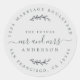 Chic, modern und einfach Hochzeitsticker Rücksendeadresse klassischer Rundaufkleber mit dem Text der Zukunft Mr. und Mrs. in Off-Black elegante Drehbuch auf einem hellgrauen Hintergrund und eine stilvolle Touch von rustikalem Blattwerk. Fügen Sie einfach Ihren Namen und Ihre Adresse hinzu. Exklusiv für Sie entworfen von Happy Dolphin Studio. Wenn Sie Hilfe oder passende Produkte benötigen, kontaktieren Sie uns bitte unter happydolphinstudio@outlook.com. Wir helfen Ihnen gerne, Ihre Hochzeit zum schönsten Tag zu machen!