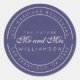 Schick, modern und schlicht, Schwarz-Weiß-Hochzeitskalligraphie klassischer Rundaufkleber mit dem Text der Zukunft Mr. und Mrs. in weißer, eleganter Schrift Kalligraphie auf marinebasischem Hintergrund. Fügen Sie einfach Ihren Namen und Ihre Adresse hinzu. Exklusiv für Sie entworfen von Happy Dolphin Studio. Wenn Sie Hilfe oder passende Produkte benötigen, kontaktieren Sie uns bitte unter happydolphinstudio@outlook.com. Wir helfen Ihnen gerne, Ihre Hochzeit zum schönsten Tag zu machen!