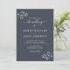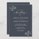 Chic Script Ivory Foliage Dark Blue Wedding Einladung