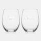 Chic Set von Edelweingläsern für Ihre Brautmädchen und Junggeselinnen-Abschied- und Brautparty-Gäste mit ihren Namen mit Monogramm in einer dünnen eleganten Kalligraphie-Skript.