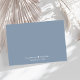 Chic dusty blue wedding RSVP Karte mit "uAwg" in einem stilvollen weißen Skript mit Swashes, einfache und elegante weiße Typografie, personalisierte Menüoptionen und Ihre Namen durch ein Herz auf der Rückseite verbunden.