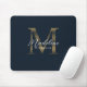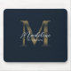 Chic Script Metallic Navy Blue and Gold Monogram Mouse Pad