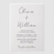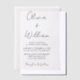 Einfache und schicke Vellum Hochzeitseinladung mit minimalistischem Flair mit den Namen von Braut und Bräutigam in einer Kalligraphie-Schrift und Ihren Hochzeitsdetails in moderner Schrift. Passen Sie die Größe des Skript-Schriftartes im Entwurfstool für längere oder kürzere Namen an, falls gewünscht. Pair es mit Ihrem Lieblings-Foto oder einem unserer korrespondierenden Solid- oder Fotokartenhintergründe für eine ausgeklügelte und zeitlose Kombination (siehe unsere Hintergründe für Vellum Overlay-Sammlungen oder Nachricht für die Links).