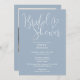Diese dustig-blaue, elegante Schrift-Brautdusche-Einladung kann mit all Ihren speziellen Event-Informationen und Foto- und Registrierungscode auf der Rückseite personalisiert werden. Entwickelt von Thisisnotme©