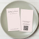 Chic hellrosa Ohrring Schmuckkarte mit Ihrem Namen oder Ihrer Marke in einem stilvollen Signaturskript. Auf der Rückseite geben Sie eine URL-Adresse ein, um einen scannbaren QR-Code zu erstellen, der mit Ihrer Website, Ihrem Portfolio, Ihrem Social Media-Profil oder einer anderen Plattform verbunden ist, die Ihre Arbeit und Ihre Produkte präsentiert. Dies macht es den Kunden leicht, Ihre Marke zu erkunden und sich mit Ihnen zu verbinden.