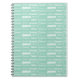 Chic seaside mint green name collage notebook gift decorated in nine different fonts spelling a custom name in white. Cute personalized kids present with beautiful typography.