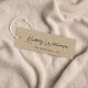 Elegante und schicke Sonderbekleidung, Accessoires, Schmuck, Boutique, etc., Etikettenaufkleber auf Kraftpapier mit minimalistischem Flair, der Ihren Namen oder Ihre Marke in einem stilvollen Signaturskript enthält. Fügen Sie unten und auf der Rückseite einen zusätzlichen Text in einfacher moderner Schrift hinzu.