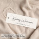 Elegante und schicke, helle Creme Kleidung, Accessoires, Schmuck, Boutique, etc., weiße Etiketten hängen Anhänger mit minimalistischem Flair mit Ihrem Namen oder Ihrer Marke in einem stilvollen Signaturskript. Fügen Sie unten und auf der Rückseite einen zusätzlichen Text in einfacher moderner Typografie hinzu.