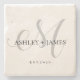 Chic Silver M Monogram Script Name Wedding Date Steinuntersetzer