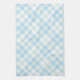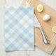 Ein elegantes Küchentuch oder ein Teetücher, mit einem karierten Muster in Sky Blue und White, das den Hunden-Rose-Mustern entspricht, aus einem digitalen Muster von Judy Adamson. Teil der Posh & Painterly 'Rosy Posy' Kollektion.