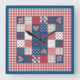 Chic Square Wall Clock, Imitate Patchwork, Gingham Quadratische Wanduhr