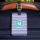 Hübsche und schicke Kofferraummarke Cabana (blau violett) und weiß gestreiftes Muster mit dem Monogramm in einem abstrakten Aqua-blauen Kreis. Einfach anpassen, indem Sie auf die Schaltfläche Anpassen klicken.