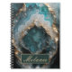 Elevate your workspace with this luxurious teal and gold geode spiral notebook, a stunning fusion of natural beauty and high-end glamour. This notebook is perfect for those who want their stationery to be as inspiring as the ideas written inside. Features a high-definition teal agate and crystal texture, complete with realistic depth and intricate crystalline patterns. personalize the cover with your name.