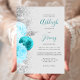 Chic Turquoise Floral Silver Glitzer Gray Wedding Einladung
