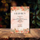 Schöne orangefarbene Blume und elegante Blätter unterstreichen diese Hochzeitsempfangskarten mit ihren Details in schicken Schriften. PASSENDE Artikel in unserer Sammlung.