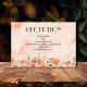 Schöne orangefarbene Blume und elegante Blätter unterstreichen diese Hochzeitsempfangskarten mit ihren Details in schicken Schriften. PASSENDE Artikel in unserer Sammlung.