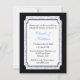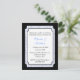 Elegante, maßgeschneiderte Hochzeitsessen Probe Einladung. Ein schöner schwarzer Rahmen im Art-Déco-Stil, der um einen dünner blauen und weißen Rahmen herum angeordnet ist, der an einen weißen Textbereich grenzt. Personalisieren Sie den gesamten Text für Ihre Veranstaltung.