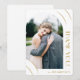 Dieses schicke, weiße 1 Foto Hochzeit Dankeschön-Karte verfügt über einen schönen goldfarbenen Bogen geometrischen Rahmen und ein Foto. Bitte schauen Sie sich diese trendige Hochzeitskollektion an, um Hochzeitseinladungen zu koordinieren und weitere Chic-Farboptionen zu erhalten.