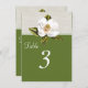 Eine schöne Hochzeitskarte in grün, mit Elfenbein-Tischnummer und einem runden Hintergrund auf der Oberseite. Schönes Vintages Kunstwerk einer weißen Magnolienblüte schmückt die Oberseite der Karte, auf der Vorder-und Rückseite. Weißer Text ist vollständig anpassbar und kann für jeden Tisch am Empfang individuell angepasst werden. Hübsche Ergänzung zu unserem Süd Magnolias Hochzeitsfest Set.