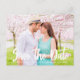 Rett das neue Datum in schicke fette Typografie auf dieser schönen Verlobung Foto Postkarte geschrieben. Fügen Sie Ihr eigenes volles Blutpaar Foto auf diesem modernen minimalistischen Save the Date und personalisieren Sie die Einzelheiten der Hochzeit und Website auf der Rückseite dieser einfachen Postkarten.