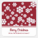 Chic White Snowflakes Nordic Pattern auf Dunkelrot Quadratischer Aufkleber