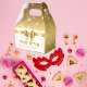 Chic White and Gold Hebrew Purim Favor Box, ideal für Mishloach Manot
