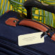 Ein schicke, gelbe Art Deko gewölbte Skallop Muster Gepäckanhänger mit einem weichen grauen Quarrefolien Abzeichen können Sie personalisieren, indem Sie einfach Ihre eigene Monogramm und Namen hinzufügen. Dies ist Teil der Meadowlark Scallops Harbor Mist Monogram Spring Collection.