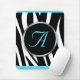 Chic Zebra Print Aqua Blue Monogram Mousepad