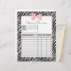 Mit diesen schicken und stilvollen zebra print Boutique Formularen, die mit gürtelrosafarbenem Bändchendesign in einem niedlichen Bogen verziert sind, machen Sie die Bestellung einfach. Personalisieren Sie diese, indem Sie den Namen Ihres Ladens oder Online-Shops hinzufügen. Diese trendigen Vorlagen des Bestellformulars haben Platz für eine Produktbeschreibung, Menge und Verkaufspreis. Flachbild, nicht echtes Band.