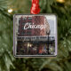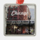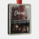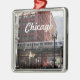 Square, metal ornament that features a photo image of the iconic Chicago elevated commuter train in the downtown city area. Select your ornament style. Makes a great travel souvenir and holiday ornament!