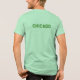 Grafischer T - Shirt mit der Skyline von Chicago Illinois. Grüne Farben. Die Skyline von Chicago steht an der Vorderseite dieses Shirts der Tri-Mix. Die Rückseite hat "CHICAGO". Mit der Vorlage können Sie den Text auf der Rückseite ändern oder wie verlassen werden. Großartiger T - Shirt für Männer, Frauen und Kinder.
