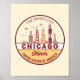 Chicago minimalistisches, farbenfrohes Kunstdesign mit Denkmälern und Sehenswürdigkeiten der Stadt in Illinois.