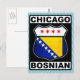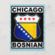 Klassisches Design-Schild mit dem Text Chicago Bosnian und den Flaggen der Stadt Chciago und Bosnien und Herzegowina