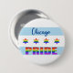 Dieses Chicago PRIDE Design kombiniert die Elemente der Chicagoer Flagge mit den LBGTQ Regenbogenfarben. Das Wort Chicago befindet sich in einem Schriftart mit einem blauen Skripttyp. Die vier Sterne und das Wort "PRIDE" sind in den Regenbogenfarben.