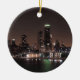 Ansicht des ChicagoSkyline mit dem Gebäude Johns Hancock leuchtete nachts vom Ende des Marine-Piers