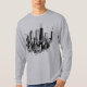 Chicagoer Skyline-T - Shirt. Ideal für Fans und diejenigen, die in Chicago wohnen. Der T - Shirt besticht durch das Stadtbild und die Skyline von Chicago Illinois. Schönes Top für Reisen oder alltägliche Kleidung. Schwarz und Grau Farben angezeigt. Modernes Outfit. Behalt den Text auf der Vorderseite oder ändere den Text auf dem T - Shirt mit der Vorlage in den gewünschten Namen oder Satz.