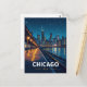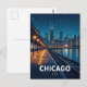 Stunning retro travel poster style art capturing the iconic Chicago, USA skyline at night from a train platform. Perfect for Chicago lovers, travelers, city dwellers, and fans of beautiful urban nightscapes.