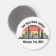 Personalized Chicago Illinois vacation magnet with a silhouette of the city skyline in front of a cool sunset. Cool trip keepsake souvenir for a family trip.