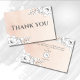 Chic blush rosa Wasserfarben Hintergrund, mit zartem Dekor, und moderne skizzenhafte Einrichtung mit weißer Blüte an der oberen rechten Ecke und unten links Ecke. Chic Serif Schriftart auf Holzkohle für die personalisierbare Dank Typografie. Zurück von Dankeschön-Karte verfügt über die gleichen Blumenarrangements mit eleganten Schriftart-Kombination aus Kalligraphie und Serif-Schriftart für individuelle Danksagungen. Eine Medaillon-Monogramm mit den Geburtstagsmädchen Initialen auf elegante Kalligraphie am unteren Ende, gefolgt von Veranstaltungen Datum.