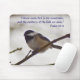 Ein heitrer kleiner Chickadee sitzt in einem Baum und nennt seinen Namen: Küken-ein-dee-dee-dee. Mitteilung: "Ich kenne jeden Vogel in den Bergen, und die Geschöpfe des Feldes sind meine." Psalm-50:11